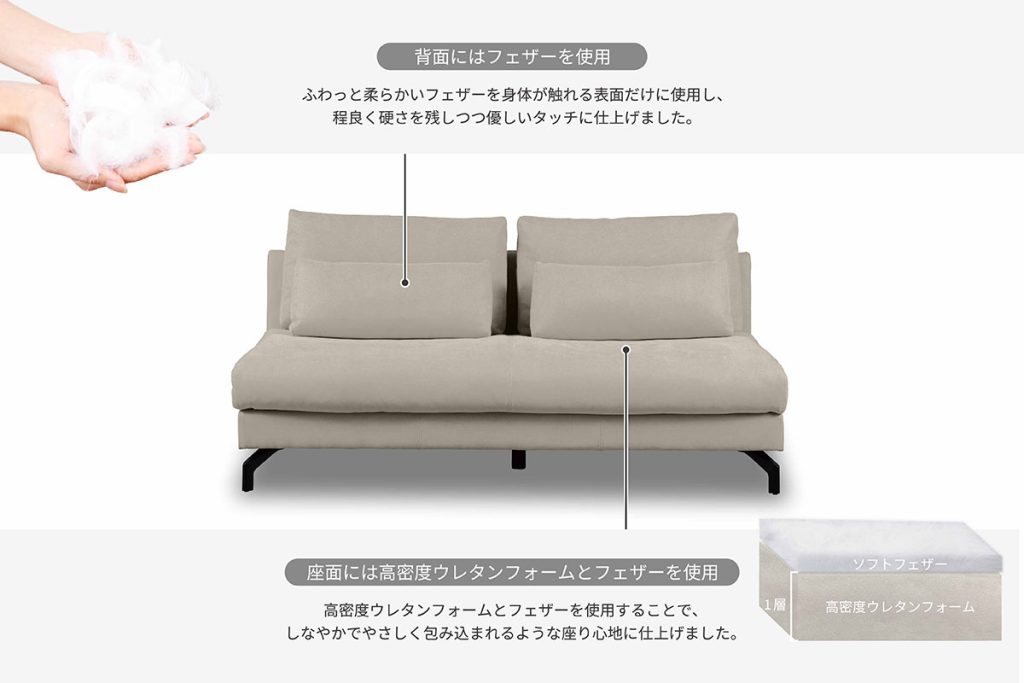 フェザーを贅沢に使用したクッションが、包み込むようなくつろぎを提供します。